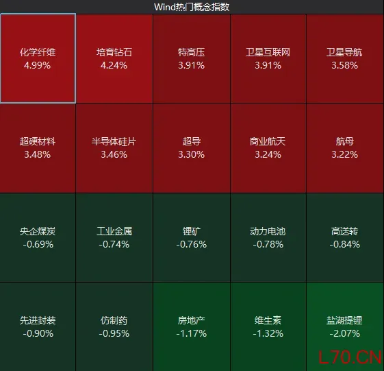 板块来看,商业航天概念爆发,光纤概念快速拉升,液冷服务器概念走强。下跌方面,医药板块走势较弱。