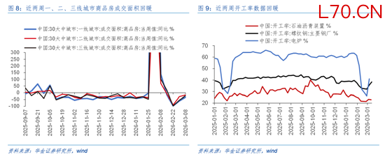 短期经济和盈利可能仍处于修复趋势中。(1)经济仍处于修复趋势中。一是2月出口同比增速大幅超预期:2月出口同比增速高达39.6%,其中船舶、家具、集成电路等出口同比增速较高,分别为187.7%、67.8%、66.5%,显示外需偏强且国内出口优势持续较大,后续出口回落压力可能比预期较低。二是近两周一二三线地产周销售同比降幅有所收窄但仍偏弱,电炉和螺纹钢等开工率有所回升:首先,一线、二线、三线城市商品房成交面积同比增速分别为-33.0%、-17.0%、-23.0%,虽然仍较去年同期偏低,但降幅较上期已有所收窄;其次,电炉和螺纹钢等开工率有所回升,螺纹钢最新开工率录得为35.8%(前值为32.1%)、电炉最新开工率录得为41.0%(前值为26.3%),显示短期经济在旺季效应下可能开始逐步修复。(2)短期盈利增速可能继续回升。一是2月PPI同比下降0.9%,降幅较1月份继续收窄,主要受有色金属相关制造业PPI同比等拉动,后续在反内卷政策进一步实施和地缘局势紧张导致商品价格上涨等驱动下PPI同比增速可能进一步回升,这可能导致工业企业盈利增速继续处于回升趋势中。二是汽车、机械设备、国防军工等行业已披露可比口径下2025年盈利同比增速较高,A股盈利短期可能继续处于回升周期中。