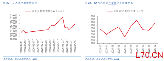 短期建议逢低配置可能补涨和基本面可能边际改善的非银金融、消费等行业。(1)非银金融:一是近期全A成交额维持高位,市场情绪较热下券商交易佣金可能提升,行业景气可能改善;二是第四届HED亚洲峰会香港将于2026年3月19-20日举行,主题为“从资本到创新:在变局中重塑资产配置”,聚焦大中华资本市场结构性转型、中国资产管理机构全球化进程及亚洲财富管理格局演变与融合;三是2026第八届中国金融数智峰会将于3月25日在上海举办,本届峰会以“数启新金融·智聚新生态”为主题,主论坛与分论坛围绕智能跃迁、数据驱动、生态协同及未来视野四大议题展开研讨,涉及AIGC、数据要素资产化及隐私计算等领域。(2)消费:一是12月乳制品产量环比上涨9.71%;二是2026年中国家电及消费电子博览会将于2026年3月12-15日在上海新国际博览中心与上海东方枢纽国际商务合作区日上综合体两地同步举行,本届博览会以“AI科技、慧享未来”为主题,首次启用“一展双区”的新模式;三是第六届中国跨境电商交易会将于2026年3月18-20日在福州海峡国际会展中心举办,本届展会预计展览面积达10万平方米。