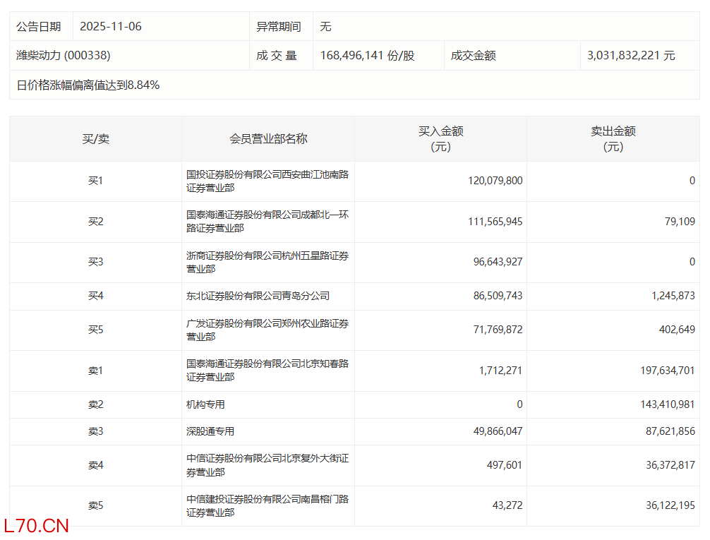 潍柴动力今日涨停,有1家机构专用席位净卖出1.43亿元