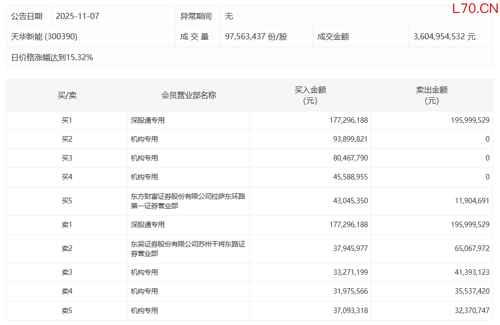 天华新能今日涨15.32%,4家机构专用席位净买入2.25亿元