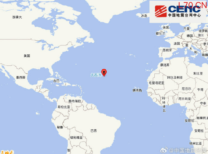 中大西洋海岭北部发生6.7级地震 震源深度10千米