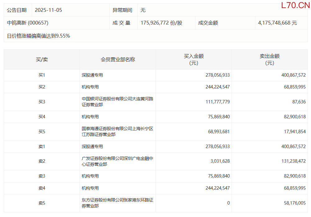 中钨高新今日涨停,陈小群席位净买入1.12亿元