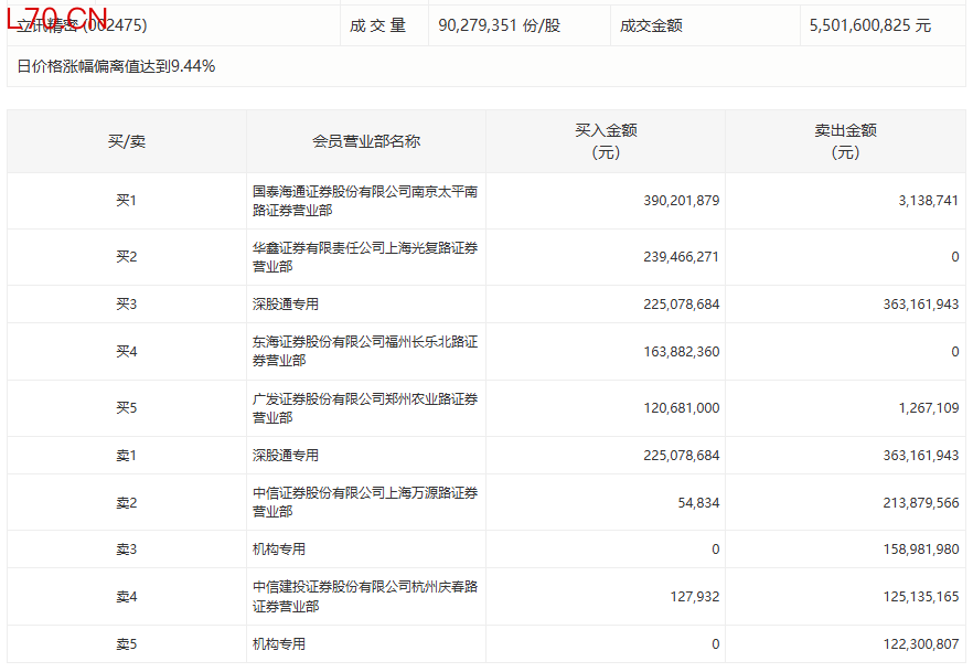 立讯精密今日涨停,作手新一席位净买入3.87亿元