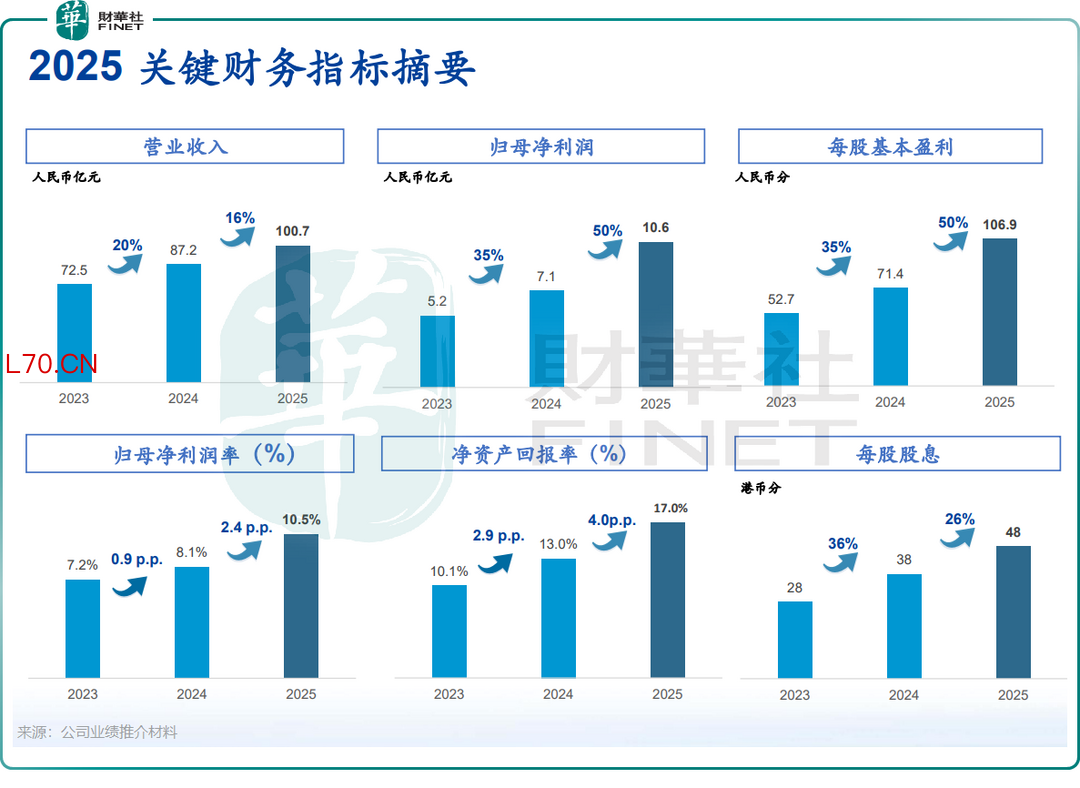 2025年,公司实现营收100.74亿元(单位人民币,下同),同比增长16%,首次突破百亿大关;纯利10.58亿元,同比大增50%,创下历史最佳水平,这一成绩足以让大多数港股制造业公司羡慕。
