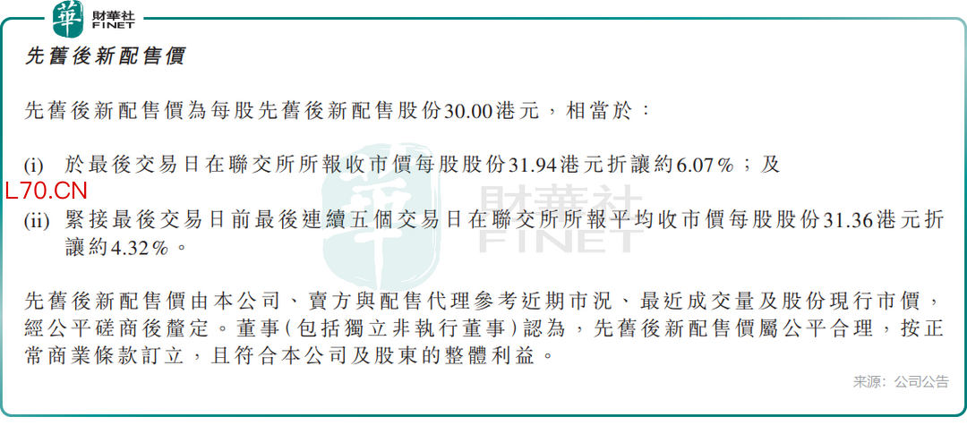 在此次配股中,威胜控股每股30港元的配售价较前一日收盘价折让约6.07%,配售股份占已发行股本约5.02%。